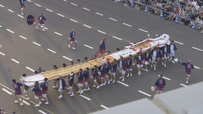 「東北絆まつり」が17日、青森県で開幕し、参加した福島県福島市の福島わらじまつりも威勢よく練り歩きました。青森県で開幕した、東北6県の夏祭りが一堂に会した「東北絆まつり」。公道でのパレードは4年ぶりです…