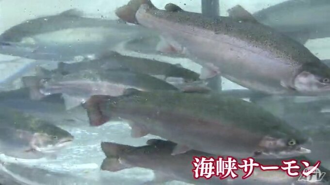 青森県むつ市の特産品=海峡サーモンの水揚げが最盛期を迎えるなか、恒例の大畑海峡サーモン祭りが開かれ、多くの家族連れなどで賑わいました。淡水魚のニジマスを津軽海峡の生簀で育てた海峡サーモン。これを多く…