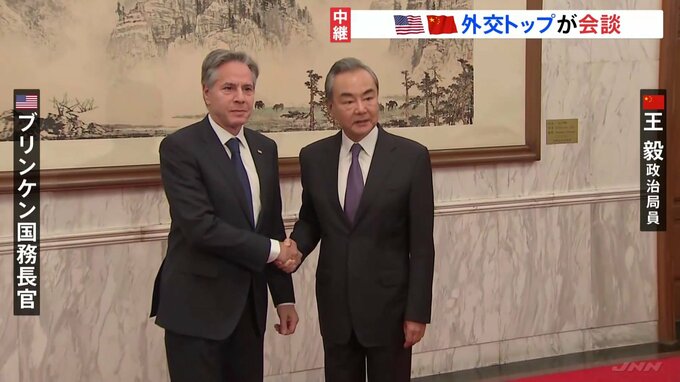 北京を訪問中のアメリカのブリンケン国務長官は中国の外交トップ、王毅政治局員との会談に臨んでいて、米中関係改善の糸口をつかめるか注目されています。北京から中継です。会談は1時間ほど前に始まり、台湾問題…