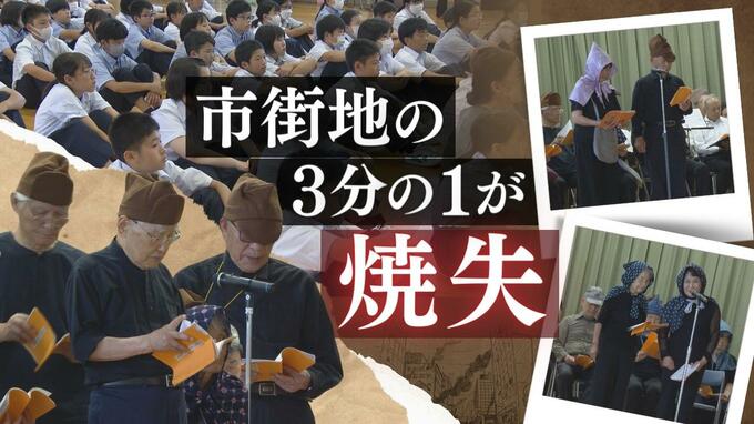 大空襲を経験した人から生々しく伝えられる被害の実相。1146人が犠牲になった福岡大空襲の日に、生徒たちは平和に対する認識を新たにしました。 「空襲~!空襲~!」「はなちゃ~ん、はなちゃ~ん、お母さん…