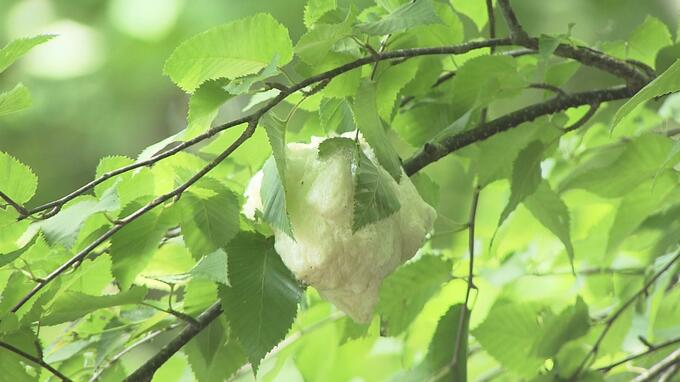 福島県川内村の平伏沼。標高およそ800メートルの山の上にあるこの小さな沼では今、新しい命が生まれています。子ども「いたいた、動いてる」主に木の上で生活するモリアオガエル。平伏沼はモリアオガエルの繁殖地…