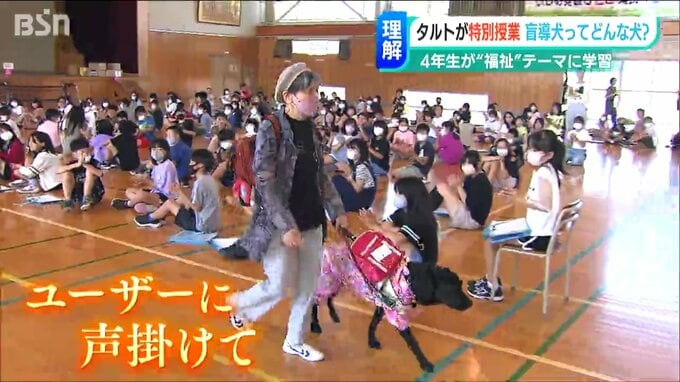 目の不自由な人をサポートする『盲導犬』について理解を深めてもらおうと、新潟市東区の大形小学校で特別授業が行われました。