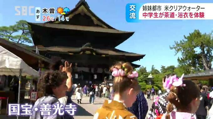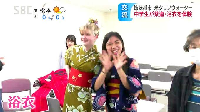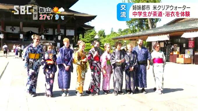 長野市の姉妹都市アメリカ・クリアウォーター市の中学生が4年ぶりに長野市を訪れていて、19日は抹茶や浴衣など日本の伝統文化に触れました。