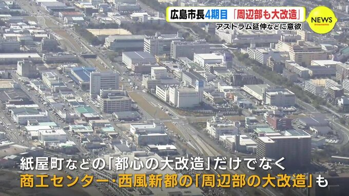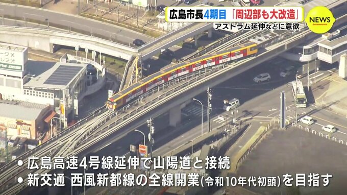 そして紙屋町などの “都心” の大改造だけでなく、商工センターや西風新都など “周辺部” の大改造も進め、▽広島高速4号線の延伸で山陽道と接続させることや、▽アストラムライン西風新都線の全線開業を目指したいと述べました。