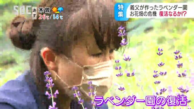 農園の手入れを続けた亡き父の思いを受け継ぎ、ラベンダー畑の復活に取り組む女性の姿です。