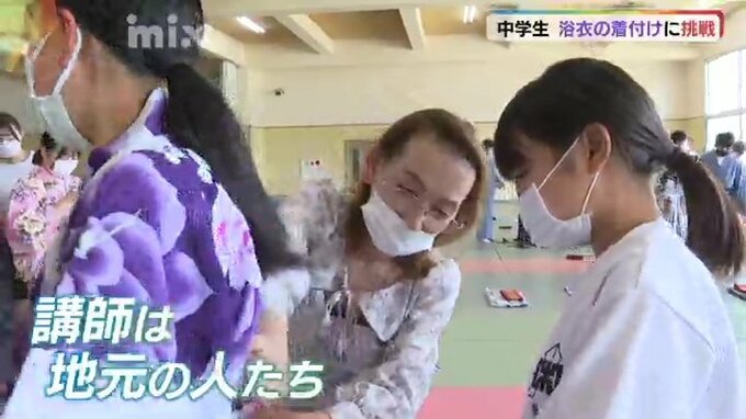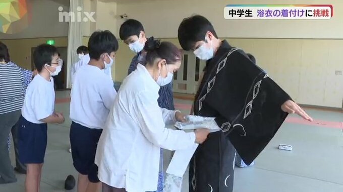 山口県長門市の中学生が浴衣の着付けを学びました。