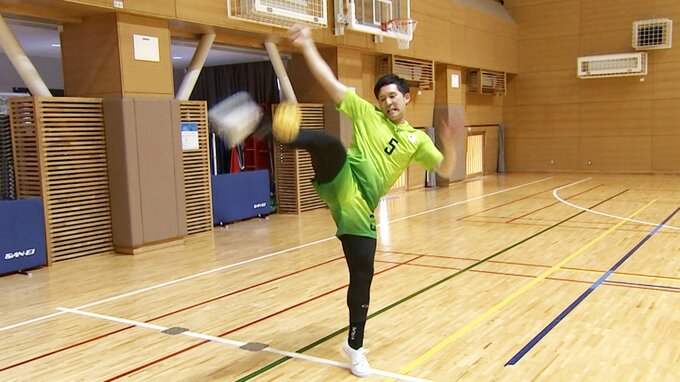 続いて挑戦した基本のリフティングは、抜群の運動神経でなんなくこなすも、試合のカギを握るサーブでは、空振ったり、ボールを狙う位置にコントロールできず・・・。「一つサーブだけでもめちゃくちゃ難しいな」と苦戦していた杉谷だが、挑戦すること10本目、見事サーブに成功。「めちゃくちゃ気持ちいい」と手をたたき、喜んだ。