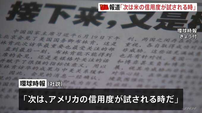 記者「こちらは、きょうの『環球時報』です。一面にはブリンケン国務長官が習近平国家主席と面会したというニュースがきています」中国共産党系の国際紙「環球時報」は「次はアメリカの信用度が試される時だ」と題…