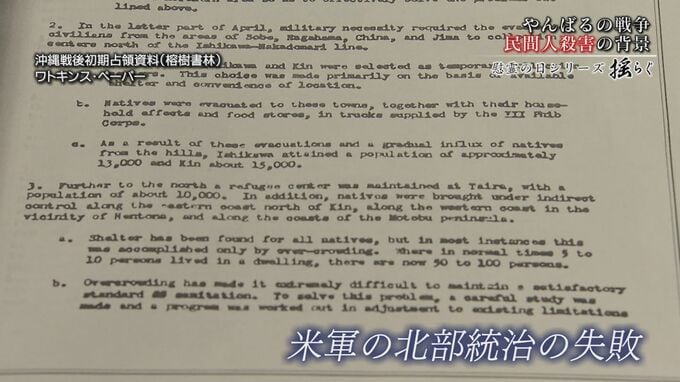 鉄線などで外部と仕切られていない名ばかりの収容所で、日本兵に襲撃された捕虜たち。アメリカ軍は当時、住民保護を含む北部の統治について、失敗したと分析しています。