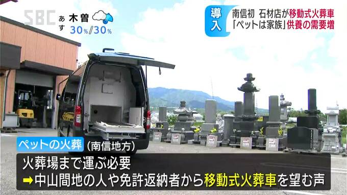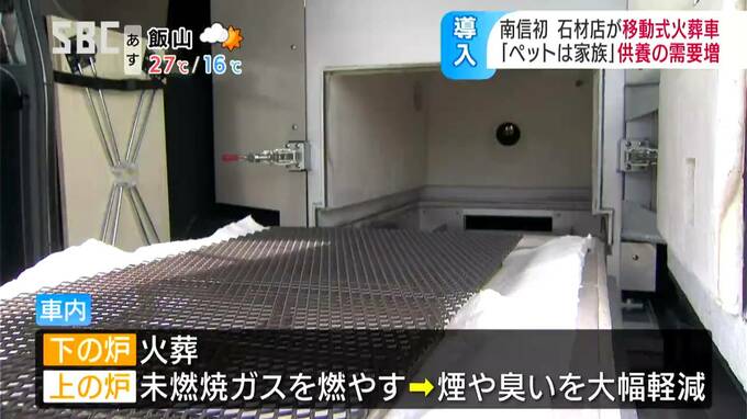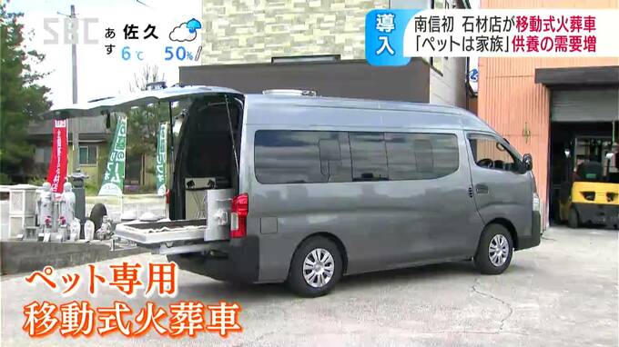 「ペットは家族の一員」と考える人が増える中、飯田市の石材店がペット専用の移動式火葬車を導入しました。