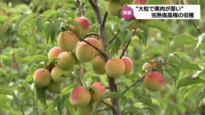 美郷町では、特産の完熟した「南高梅」の収穫が始まりました。大粒で皮が薄く、果肉が厚いのが特徴の南高梅。美郷町南郷の水清谷地区にある、およそ8ヘクタールの梅園では、5戸の農家が、あわせて3000本以上の南高…