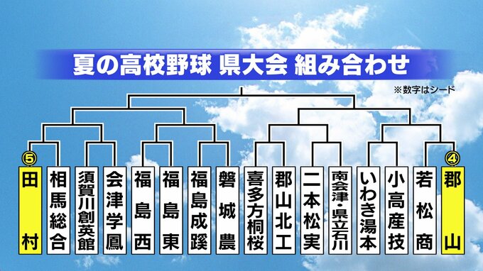 最後のブロックです。今年の春の県大会で、27年ぶりにベスト4に進出した第4シード・郡山の初戦は若松商業です。第5シードの田村の相手は相馬総合に決定しました。