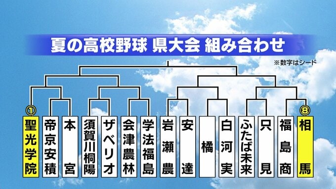まずは第1シード・聖光学院のブロックです。去年、春のセンバツに出場した只見が入り、ふたば未来と対戦。また、第8シード相馬の初戦は古豪・福島商業に決まりました。