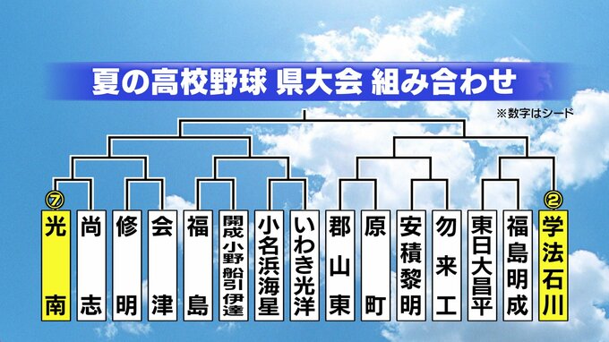 続いて、第2シード24年ぶりの優勝を目指す学法石川のブロックです。反対側の第7シード、去年の夏の準優勝校・光南は尚志と初戦を戦います。