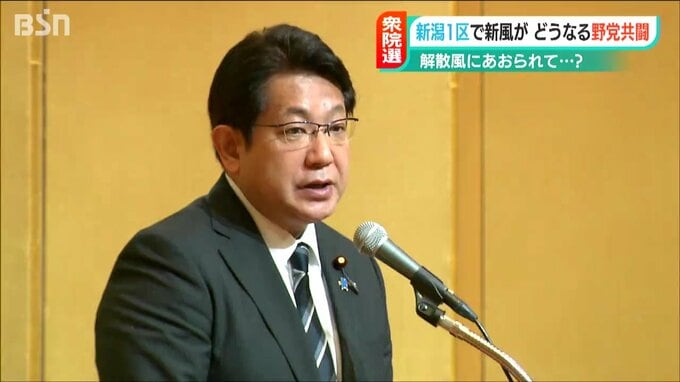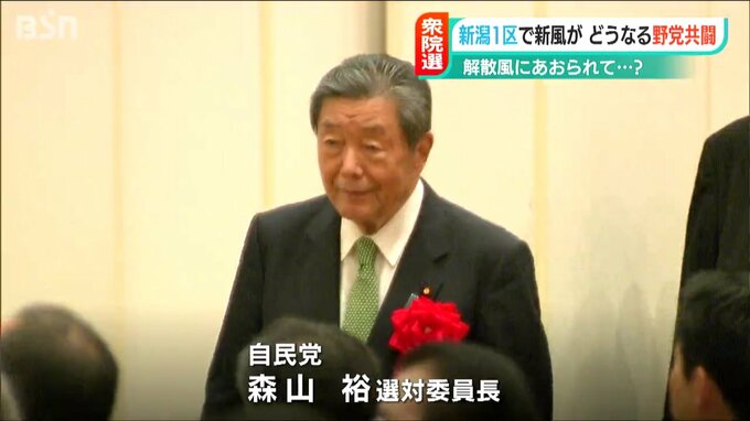 こうした野党側の共闘体制のほころびをよそに、議席奪還を目指すのは自民党の塚田一郎 衆議院議員(59)です。自民党新潟支部の会合で、党本部の森山裕選対委員長を出迎えていました。