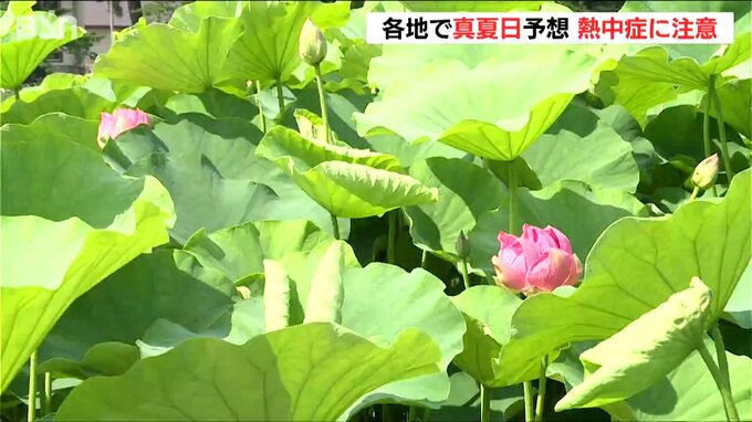 21日の新潟県内は各地で気温が上がり、30度以上の真夏日となるところもあり、熱中症に注意が必要です。こうした中、上越市の高田城址公園ではハスの花が咲き始めています。 青空が広がる上越市の高田城址公園。外…