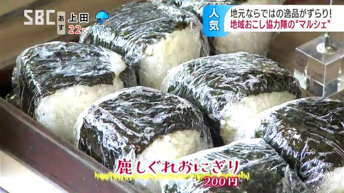 若穂地区に食堂を開いた元協力隊員の女性が販売するのは、甘辛く煮た鹿肉を具に入れたおにぎりです。