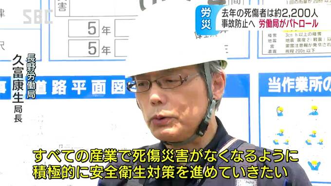 労災事故による死傷者が増える中、長野労働局長が事故の防止を呼びかけるパトロールを行いました。