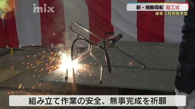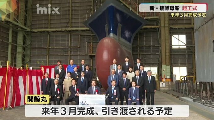 山口県下関市で建造されている新しい捕鯨母船の組み立てが始まるのを前に、起工式が行われました。