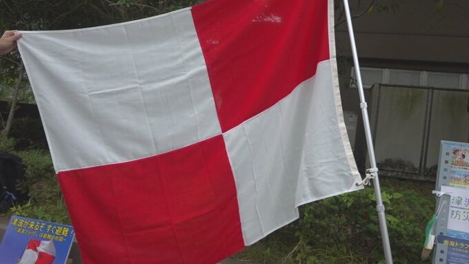 津波警報などが出たことを知らせる「津波フラッグ」の普及キャンペーンが、山梨大学で行われました。赤と白の格子模様の津波フラッグ。津波警報や注意報が出た際に海岸にいる人に避難を呼びかける旗で、東日本大震…