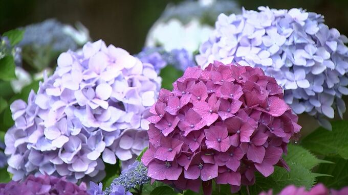 香川県丸亀市のレオマリゾートでは、梅雨の時期に園内を彩る「あじさい祭」が開かれています。赤紫に白、色とりどりのアジサイが見ごろを迎えている丸亀市のレオマリゾートです。アジサイはきのう(20日)までの暑…
