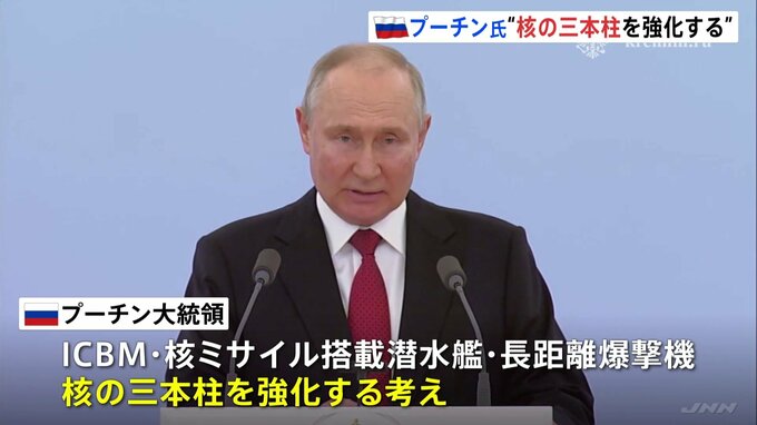 ロシアのプーチン大統領はICBM=大陸間弾道ミサイルなど「核の3本柱」を強化していく考えを示しました。ロシア プーチン大統領「最重要課題はロシアの安全と世界の安定を保証する、核の3本柱の発展である」プーチ…