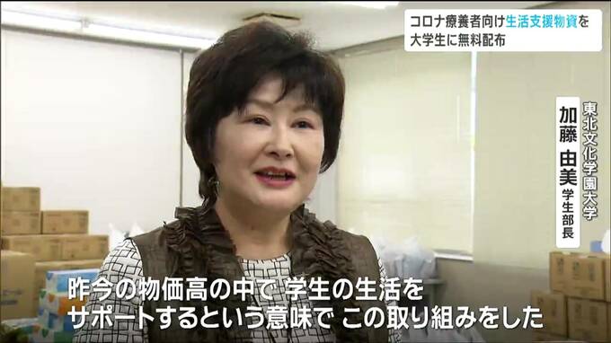 物価高の影響を受ける学生を経済的に応援しようと、コロナ療養者向けの生活支援物資が仙台市内の大学で無料配布されました。