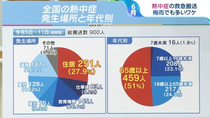 全国の熱中症による救急搬送の数は6月5日~11日の速報値で900人。