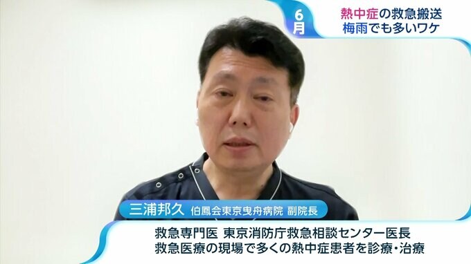 この時期は気温がそこそこ高く、梅雨で湿度も高く、熱中症の危険が増している。ただ油断している人が多い。熱中症というのは油断している人がなるんですよ。