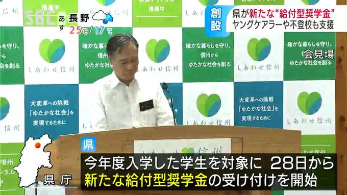 長野県は今年度から新たな給付型の奨学金を創設し、家族の介護を担っていたヤングケアラーやかつて不登校だった大学生なども対象に、学びを支援していくことを明らかにしました。
