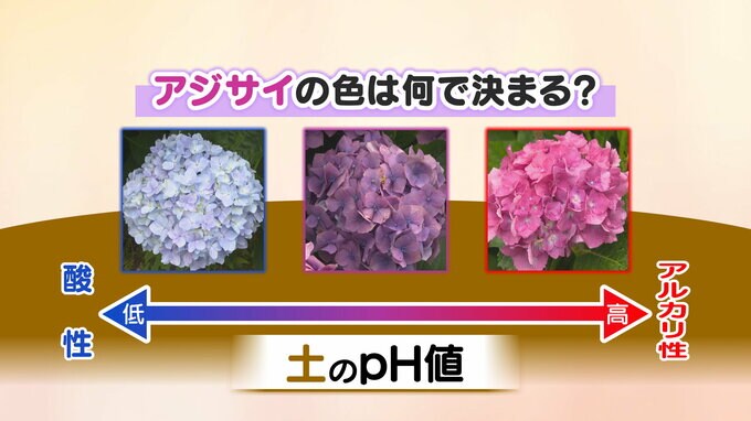 梅雨の風物詩の一つ、アジサイ。みなさんは、アジサイの色はどう決まるかご存じですか?元々色が決まっている品種も一部ありますが、多くは「ある条件」によって色が決まるんです。