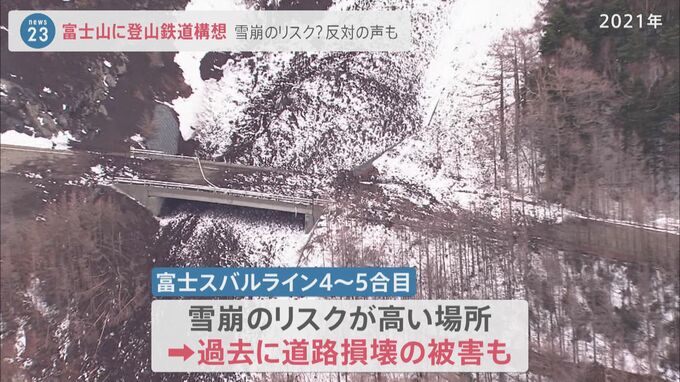 登山鉄道が構想されている富士スバルラインの4合目と5合目の間は、雪崩のリスクが高い場所で過去に、道路が壊れるような被害も発生しています。