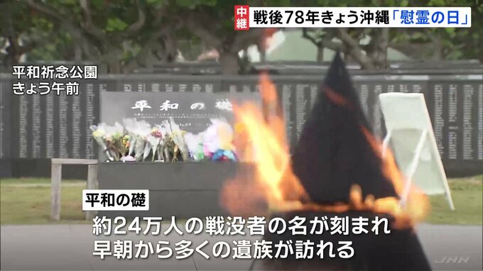 きょう6月23日は、78年前の沖縄戦で組織的な戦闘が終結したとされる「慰霊の日」です。糸満市では間もなく、岸田総理も出席して追悼式典が行われます。会場から中継です。雲の隙間から暑い日差しが降り注ぐ、糸満…