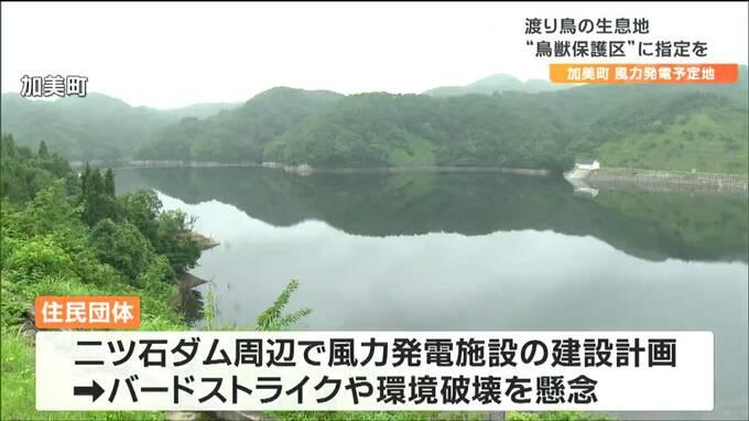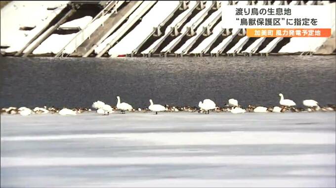 風力発電の計画が持ち上がっている地域をめぐり要望です。宮城県加美町の二ツ石ダム周辺が、ガンやハクチョウなど渡り鳥の重要な生息地になっているとして、住民団体が、県に対し、この地域を鳥獣保護区に指定するよう要望しました。