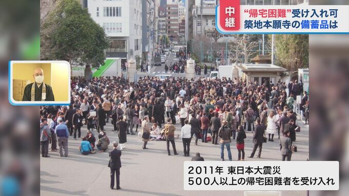 帰宅できない人たちを当時救ったのは、学校や商業施設などが一時受け入れ施設として開放されたことでした。一時受け入れ施設のひとつ、東京都中央区の築地本願寺に聞きました。
