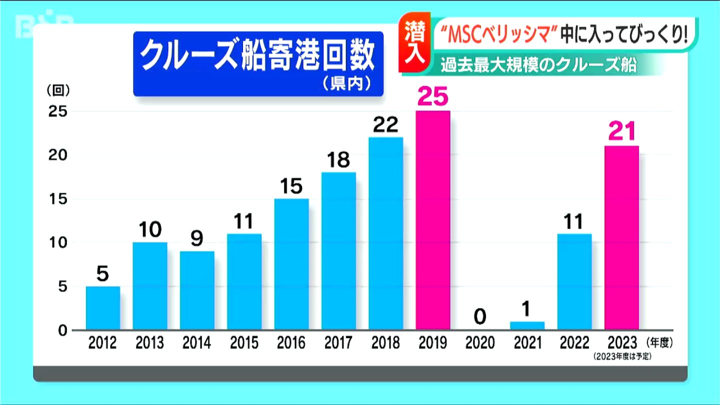 県内のクルーズ船の寄港数はウイルス禍で激減していましたが、今年度は、現時点で21回の寄港が予定されています。これは過去最多だった2019年度に迫る水準で、急回復が見込まれています。背景には県の取り組みがあります。