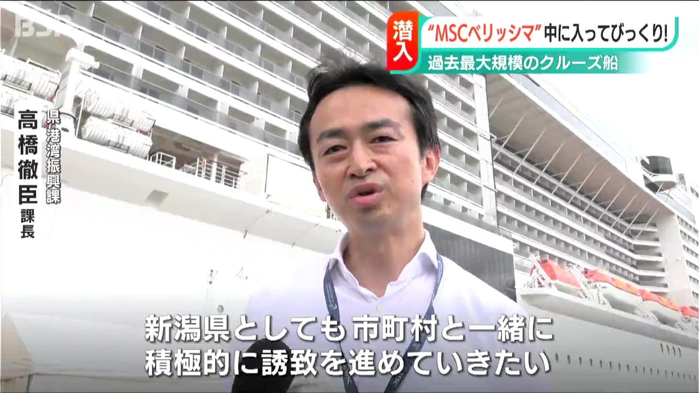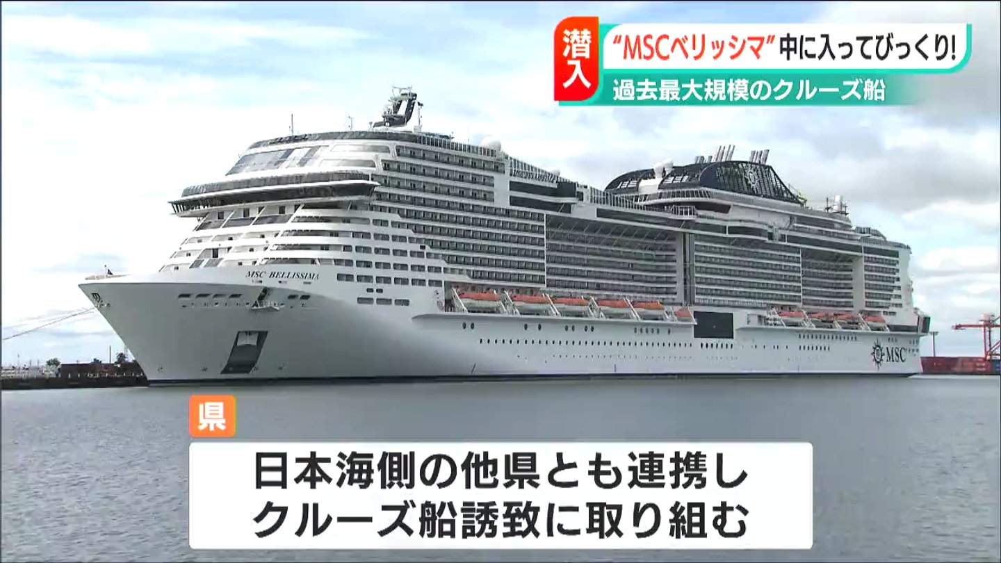 新潟東港に23日、県内に入港した船では過去最大規模の船、クルーズ船・「MSCベリッシマ」が寄港しました。豪華客船の船内にカメラが入りました。