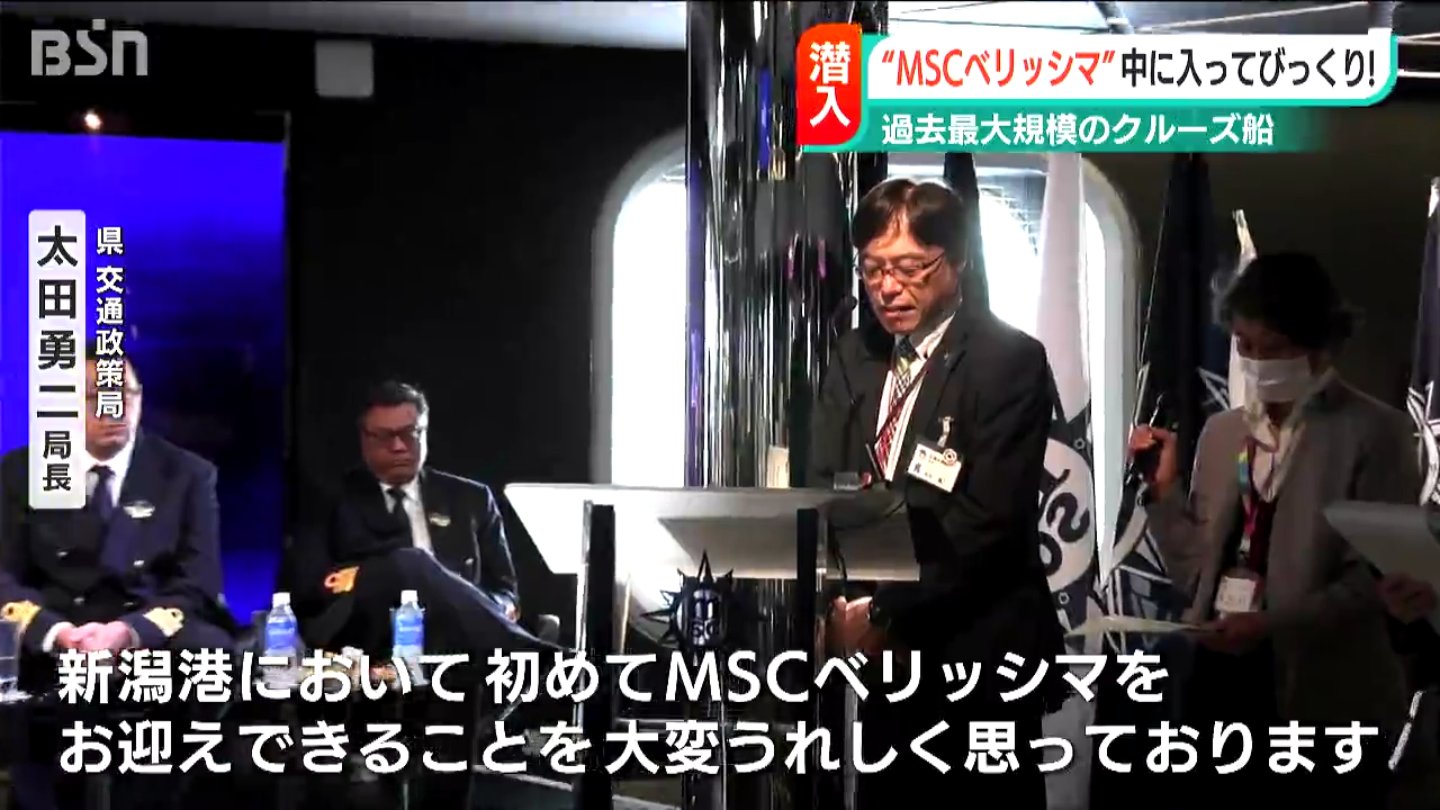 【県交通政策局 太田勇二 局長】「新潟港において初めてMSCベリッシマをお迎えできることを大変うれしく思っております」