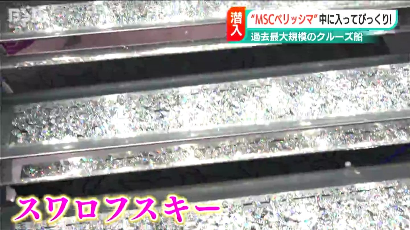 【乗客は】「船の中はすごくゴージャスです。プロムナードとか螺旋階段もスワロフスキーできらきら輝いていて」
