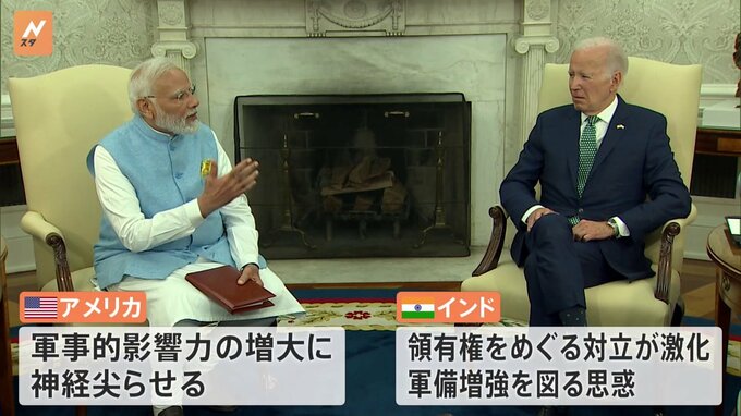 国際社会で存在感を増すインド。モディ首相はアメリカに国賓として招かれ、バイデン大統領との間で軍事面などでの連携強化で合意しました。“急接近”の背景にあるのはやはり、中国です。ホワイトハウスに招かれた…