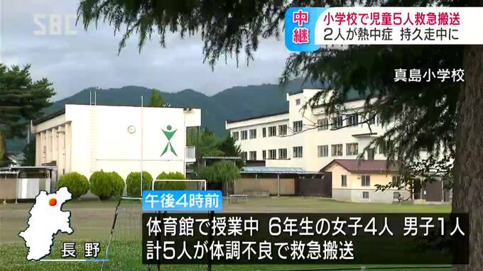 23日午後4時前、長野市の真島(ましま)小学校の体育館で、授業中の6年生の女子4人と男子1人の合わせて5人が体調不良を訴え、病院に運ばれました。