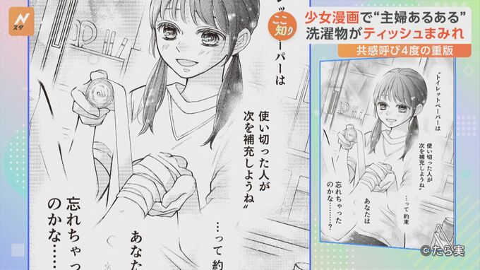 この作品を描いたのはイラストレーターの「たら実」さん。2人の小学生の母親です。日常の愚痴を書き留めたネタ帳から作品が生まれるといいます。