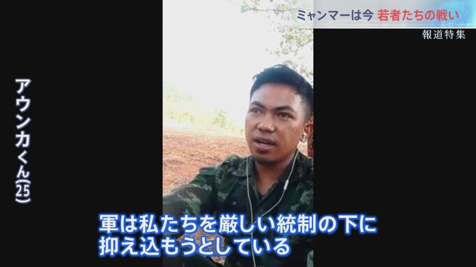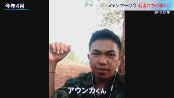 アウンカくんは、民主派の軍事組織「国民防衛隊」に所属しています。軍に反発する若者らで結成され、軍隊経験のないメンバーがほとんどです。
