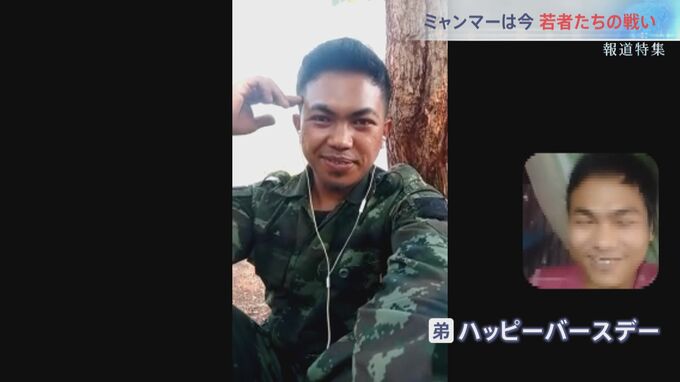 ネットを通じて兄の誕生日を祝う、アウンカさんの弟・ウェヤン君(21)。戦闘中に大けがをし、今は、ある場所で治療を受けています。