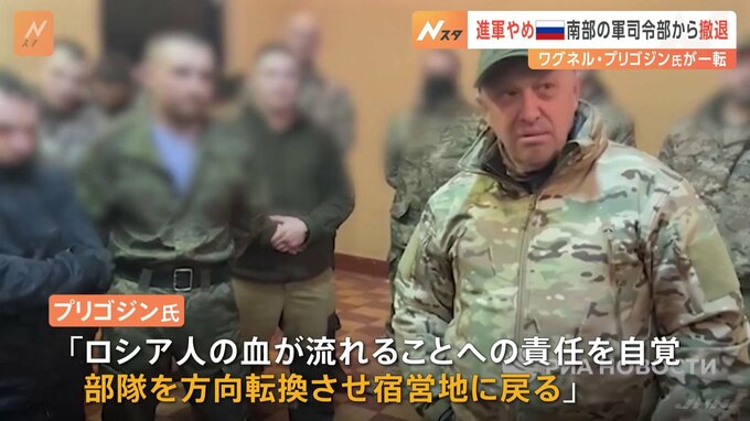 ロシアの民間軍事会社ワグネルの創設者プリゴジン氏は、首都モスクワに向けた進軍を一転してやめると表明、すでに部隊は南部の軍司令部などから撤退した模様です。ロシア国防省との対立を深めるプリゴジン氏は24日…