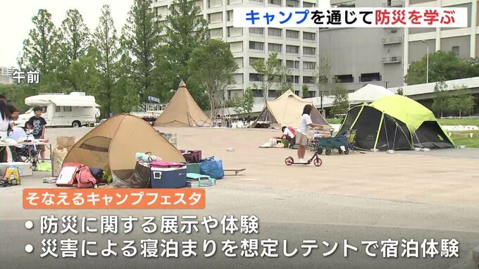 イベントでは、防災に関する展示や体験のほか、災害による屋外での寝泊まりを想定し、テントでの宿泊体験も行われました。