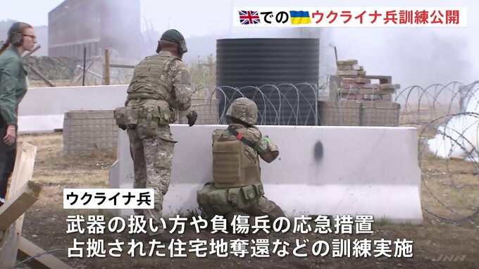 ウクライナ軍のロシア軍に対する反転攻勢が続く中、イギリス国内で行われているウクライナ兵の訓練の様子が公開されました。記者「発煙筒を焚いて敵から見えにくい状態で前進する訓練が行われています」銃を持って…