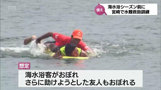 海水浴シーズンを前に宮崎市の青島海水浴場で消防やライフセーバーによる水難救助訓練が行われました。この訓練は水難事故が発生した際、迅速な救助ができるよう、毎年、この時期に実施されていて、26日は宮崎市南…