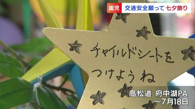 「スマホは見ちゃダメ」などと書かれた、交通安全を願う短冊です。「交通安全七夕キャンペーン」は、NEXCO西日本と香川県警などが、高速道路の交通量が増える夏休みを前に、事故防止を図ろうと行ったものです。