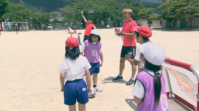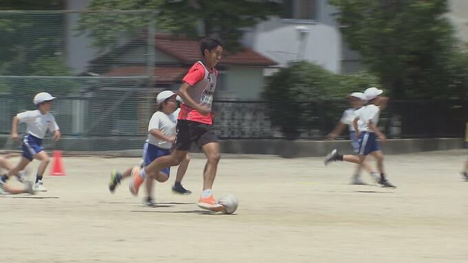 井上和樹アナウンサー「校庭には子どもたちの元気な声が響いています。サッカーを教えるのは、新人Jリーガーたち。これも研修の一環なんです。」